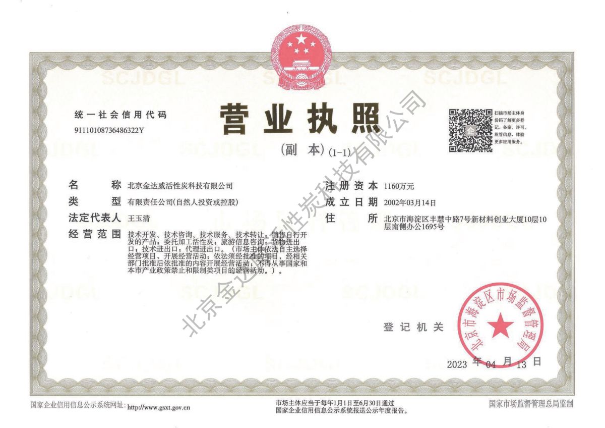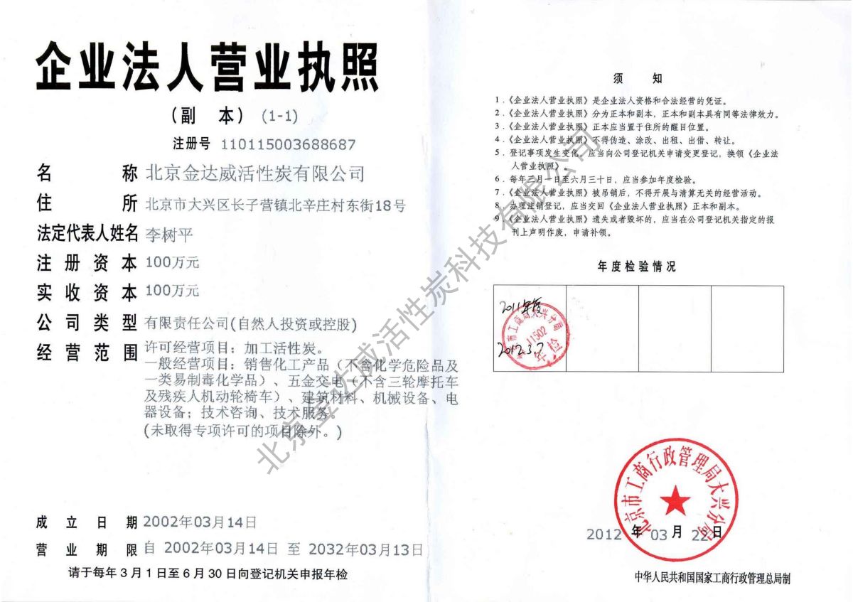 北京金达威活性炭科技有限公司创立于2002年,是一家专业从事活性炭应用领域的生产研发及服务的国家高新技术企业,每年生产各种活性炭达6000余吨。主要产品有:净水用活性炭;气体净化专用活性炭;VOCs及废气治理蜂窝活性炭;垃圾焚烧用活性炭;冶炼行业贵金属及有色金属提取专用活性炭;油气及液体油回收专用活性炭;发酵及白酒行业提纯专用活性炭;制糖、发酵、染料、制药等脱色用活性炭;木糖脱色专用活性炭;硫化氢及二氧化硫去除专用活性炭等。产品广泛应用于石化、医药、食品、冶金、环保、国防、科研等领域,特别是在医药中间体、水净化、污水处理、空气净化 、黄金提炼等行业具有非常优良的使用性能,取得了广泛的社会效益。